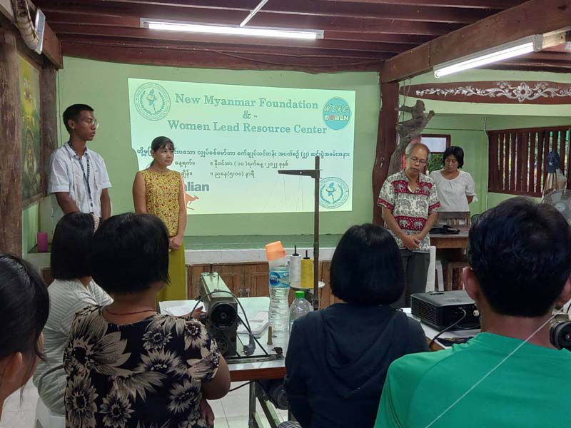 New Myanmar Foundation နှင့် Women Lead Resource Center တို့ ပူးပေါင်းပြုလုပ်သော အခမဲ့ အခြေခံ စက်ချုပ်သင်တန်း အပတ်စဉ် (၂၁) သင်တန်းဆင်းပွဲကို (၁၀-၁၁-၂၀၂၂) ရက်နေ့တွင် ထိုင်း-မြန်မာနယ်စပ်ဒေသရှိ Women Lead Resource Center တွင် ကျင်းပပြုလုပ်ခဲ့ကြရာသင်တန်းကို အောင်မြင်ပြီး‌မြောက်သည့်အထိ တက်ရောက်ခဲ့ကြသော သင်တန်းသူ/သင်တန်းသား (၁၁) ယောက်ကို New Myanmar Foundation ၏ တာဝန်ခံ ဒေါက်တာစန်းအောင်မှ အခုလိုကိုယ့်ဘဝ ကိုယ်ရပ်တည်ဖို့ကြိုးစားပြီး သင်တန်းလာတယ်လို့ ယုံကြည်လို့ ဂုဏ်ယူ ချီးကျူးပါကြောင်း ၊ ကိုယ်တိုင်းပြည်အတွက် မင်းတို့တွေအားလုံးဟာ အားတွေဖြစ်ကြောင်း ၊ အဓိကမင်းတို့တွေတိုးတက်မှ တိုင်းပြည်တိုးတက်မယ် ဆိုတဲ့စိတ်တစ်ခုနဲ့ကြိုးစားကြပါ။ New Myanmar Foundation ၏ ကူညီနေမှုများ ဆောင်ရွက်နေမှုများကို ရှင်းပြခြင်းပြုခဲ့ပြီး တန်ဘိုးရှိရှိ အသုံးပြုနိုင်ကြောင်း တိုက်တွန်း အားပေးမှာ ကြားခဲ့ပါသည်။
