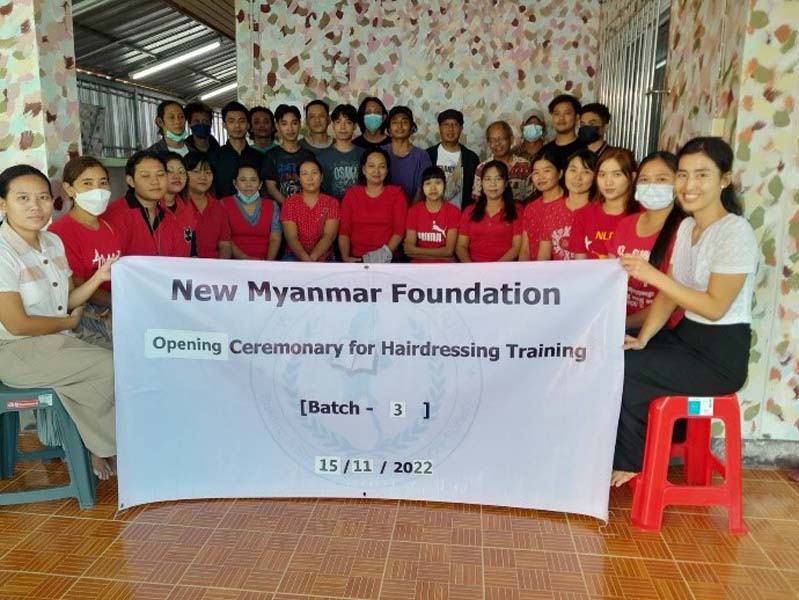 New Myanmar Foundation မှ စီစဉ်ဆောင်ရွက်သော အမျိုးသမီး၊ အမျိုးသားဆံပင်အလှပြုပြင်ရေး သင်တန်းအပတ်စဉ် (၃) ကို ၁၅-၁၁-၂၀၂၂ ရက်နေ့ (အင်္ဂါနေ့) တွင် စတင်ဖွင့်လှစ်ခဲ့ပါသည်။