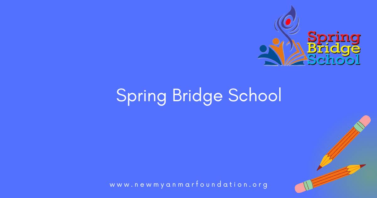 New Myanmar Foundation သည် ၂၀၂၂ မေလ (၁) ရက်နေ့စတင်ပြီး စစ်ဘေးသင့် မြန်မာနိုင်ငံသား ရင်သွေးများ၏ ပညာရေးလိုအပ်ချက်များကို ဖြည့်စည်းပေးရန် အတွက် Spring Bridge School (SBS) Online Program သို့ ကျောင်းသားများကို စတင်ဖိတ်ခေါ်ခဲ့ပါသည်။ ၂၀၂၂ ခုနှစ် ဇွန်လ (၆) ရက်နေ့ကစတင်ကာ Grade 1 မှ Grade 11 ထိ ကျောင်းသူ ကျောင်းသား ၁၂၀၀ ကျောင်ကို သင်ကြားခဲ့ပြီး December 2022 တွင်အတန်းတင်စာမေးပွဲ စစ်ဆေးခဲ့ပါသည်။ 2023 January 31 တွင် အတန်းအားလုံး၏ အောင်မြင်သော ကျောင်းသား ကျောင်းသူများကို completion certificate အောင်လက်မှတ်များပေးအပ်ခဲ့ပါသည်။ Spring Bridge School ၏ 2023 စာသင်နှစ်ကို ပြန်လည်စတင်ရန် February နှင့် March လ နှစ်လအတွင်း ဆရာ၊ဆရာများနှင့် ကျောင်းသား၊ကျောင်းသူ အသစ်များကိုဖိတ်ခေါ်လက်ခံခဲ့ပါသည်။ ဒုတိယစာသင်နှစ်ကို 2023 March 6 ရက်နေ့တွင် ပြန်လည်ဖွင့်လှစ်ခဲ့ပါသည်။ Grade 1 မှ Grade 12 ထိ ကျောင်းသား ကျောင်းသူ ပေါင်း (၁၀၀၀) ကျော်အား ဆရာ ဆရာမစုစုပေါင်း (၇၀) ကျော်ဖြင့် အတန်း (၁၈) ခုခွဲကာ သင်ကြားပေးလျှက်ရှိပါသည်။ ဤစာသင်နှစ်သည် ၂၀၂၃ အောက်တိုဘာလကုန်တွင် သင်ကြား ပြီးမြောက်မည်ဖြစ်ပြီး နိုဝင်ဘာလတွင် အတန်းတင်စာမေးပွဲများ ကျင်းပမည်ဖြစ်ပါသည်။