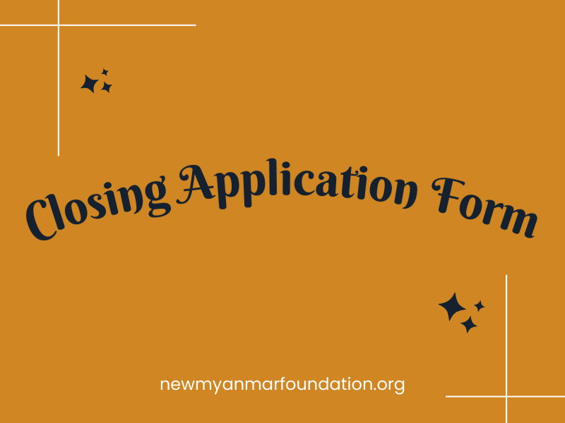 ပြည်တွင်းရှိ – ထွက်ပြေး တိမ်းရှောင်နေရသော ၊ အရေးပေါ် အကူအညီ လိုအပ်နေသော ဒီမိုကရေစီအရေး နှင့် လူ့အခွင့်အရေး ကြိုးပမ်းဆောင်ရွက်နေသူ ( ၁၀ ) ဦးအား အကူအညီပေးနိုင်ရန် လျှောက်လွှာများ တောင်းခံထားပါသည်။ ယနေ့ ( ၁၃ – ၇ – ၂၀၂၃ ) ရက်နေ့ ( ၁၂ : ၀၀ ) အချိန်တွင် လျှောက်လွှာစောင်ရေ ( ၁၀၀ ) ရရှိပြီဖြစ်ပါ၍ နောက်ထပ် လျှောက်လွှာများကို ဆက်လက် လက်ခံ နိုင်တော့မည် မဟုတ်ပါကြောင်း လေးစားစွာအကြောင်းကြားအပ်ပါသည်။