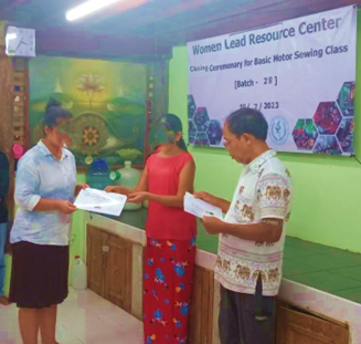 NMF မှ ဖွင့်လှစ်ကျင်းပသော အခမဲ့အခြေခံမော်တာ စက်ချုပ်သင်တန်းအပတ်စဉ် (၂၈) သင်တန်း ဆင်းပွဲ