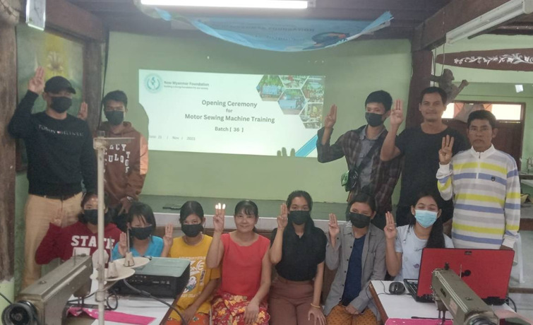 New Myanmar Foundation မှ ဦးစီးကျင်းပပြုလုပ်သော (၁၀) ရက်ကြာ နေ/စား စရိတ်ငြိမ်း “အခမဲ့ အခြေခံ မော်တာစက်နင်းစက်ချုပ်သင်တန်း” အပတ်စဉ်-(၃၆) ကို (၂၁-၁၁-၂၀၂၃) ရက်နေ့တွင် ကျင်းပ ပြုလုပ်ခဲ့ပါသည်။
