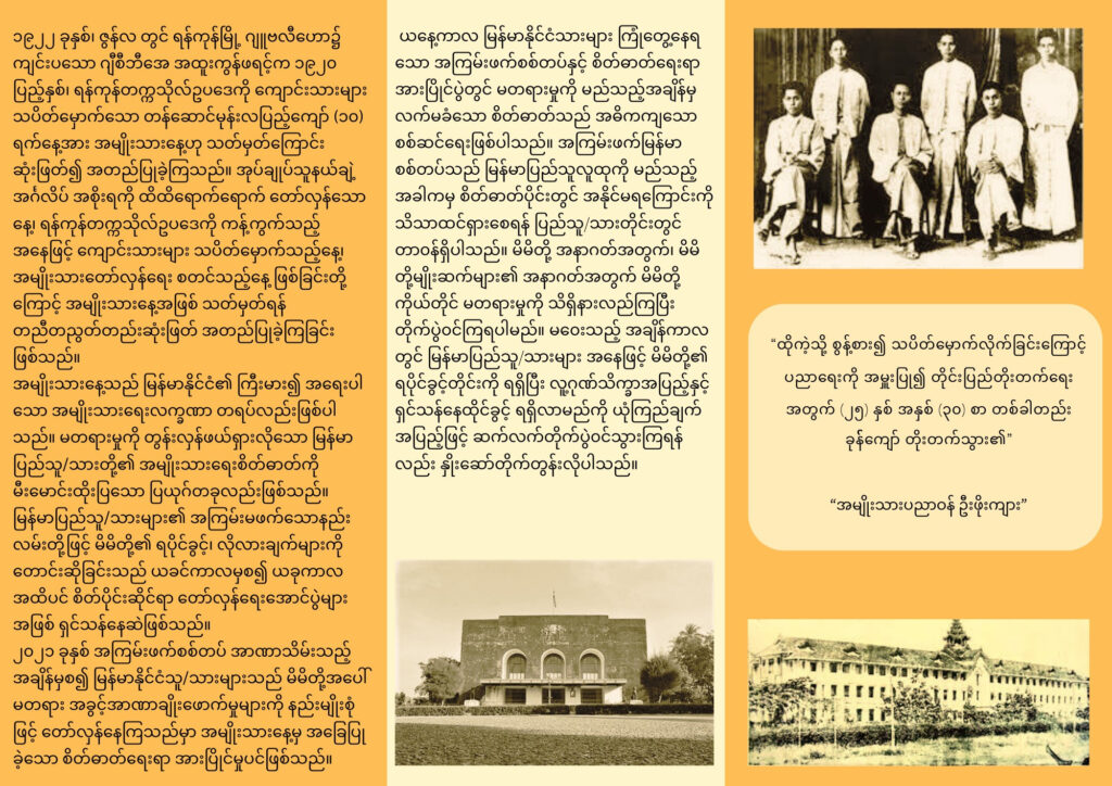 ထို့နောက် အမျိုးသားရေးစိတ်ဓာတ်များနိုးကြားလာစေရန်ရည်ရွယ်သည့် အကြောင်းအရာများ ပါဝင်သော လက်ကမ်းစာစောင်များကိုလည်း ပေးဝေခဲ့ကာ အခမ်းအနားသို့ တက်ရောက်လာသူများအား မေတ္တာလက်ဆောင်များ မျှဝေခဲ့ပြီးနောက် အခမ်းအနားကို အောင်မြင်စွာ ရုတ်သိမ်းခဲ့ပါသည်။