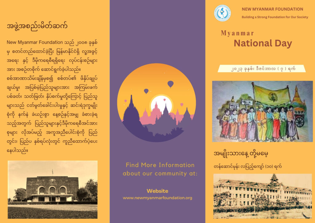 ဒီဇင်ဘာလ (၇) ရက်နေ့၊ ၂၀၂၃ ခုနှစ်တွင် ကျရောက်သော အမျိုးသားအောင်ပွဲနေ့ အခမ်းအနားအား New Myanmar Foundation မှ ဦးစီး၍ ထိုင်း – မြန်မာ နယ်စပ်တစ်နေရာတွင် ကျင်းပပြုလုပ်ခဲ့ပါသည်။ အခမ်းအနားတွင် ဦးစွာပထမ Spring Bridge Online School ၏ ကျောင်းအုပ်ဖြစ်သူ ဒေါက်တာဘိုင်အိုမှ အဖွင့်နှုတ်ခွန်းဆက်စကား ပြောကြားခဲ့ပြီးနောက် ဝါရင့်နိုင်ငံရေးသမားကြီး ဆရာစောသမိန်ထွန်းအပါအဝင် အထူးဖိတ် ကြားထားသူများမှလည်း Online မှတဆင့်လည်းကောင်း၊ အခမ်းအနားသို့ ကိုယ်တိုင်တက်ရောက်၍လည်းကောင်း အမျိုးသားနေ့အထိမ်းအမှတ်အတွက် အမှာစကားများ အသီးသီးမျှဝေပြောကြားပေးခဲ့ကြပါသည်။