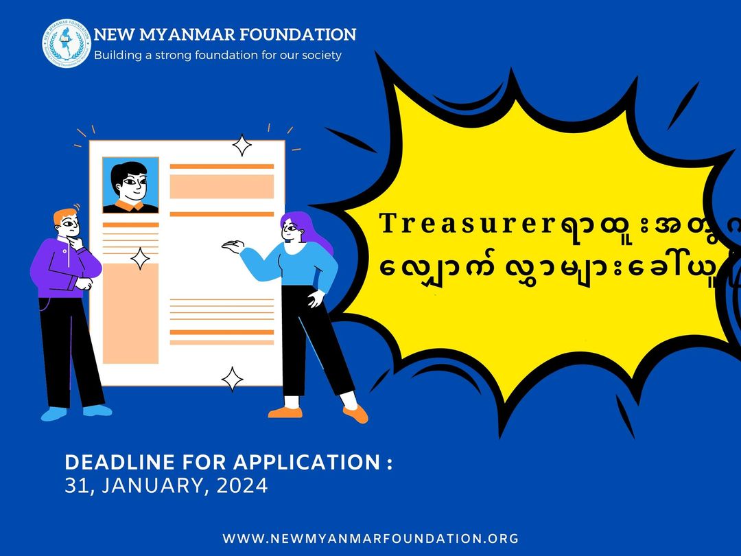 NEW MYANMAR FOUNDATION မှ Treasurer ရာထူးအတွက် လျှောက်လွှာများခေါ်ယူနေပါသည်၊