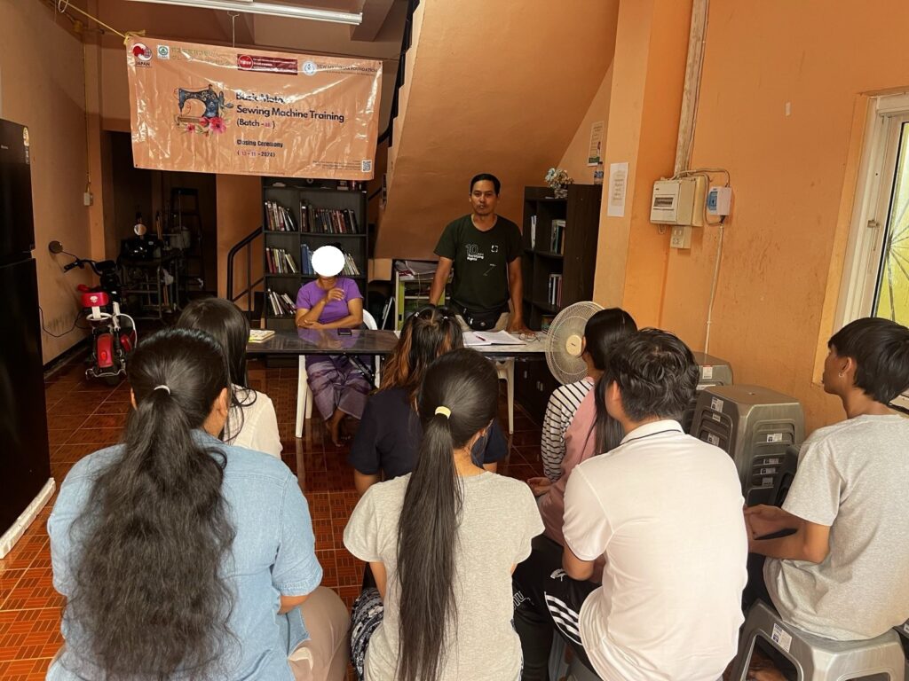 သင်တန်းဆင်းပွဲတွင် ဦးစွာပထမ သင်တန်းဆရာမဒေါ်သီတာ မှ အခမဲ့ အခြေခံ မော်တာစက်ချုပ် သင်တန်းအပတ်စဉ် (၄၆) အား သင်တန်းအစမှ ပြီးဆုံးသည်အထိ ကြိုးကြိုးစားစား အောင်မြင်အောင် တက်ရောက်ခဲ့ ကြသော သင်တန်းသားများ အား ကျေးဇူးတင်ရှိပါကြောင်း၊ New Myanmar Foundation ဘက်မှလည်း တတ်နိုင်သ၍ ကူညီပေးသွားမည် ဖြစ်ကြောင်း၊ သင်တန်းပြီးဆုံးသွားသော်လည်း သင်တန်းသားများအချင်းချင်း ညီအစ်ကိုမောင်နှမ အရင်းသဖွယ် ရှေ့ဆက်ခင်မင်သွားကြပြီး တစ်ဦးနှင့်တစ်ဦး ကူညီရိုင်းပင်းကြရန်နှင့် သင်တန်း သား/သူ များအနေဖြင့် စက်ချုပ်ပညာရပ်နှင့် ပတ်သတ်၍ လိုအပ်လာပါကလည်း ဆရာမများထံ အကူအညီ တောင်းခံနိုင်ပါကြောင်း ပြောကြားခဲ့ပါသည်။