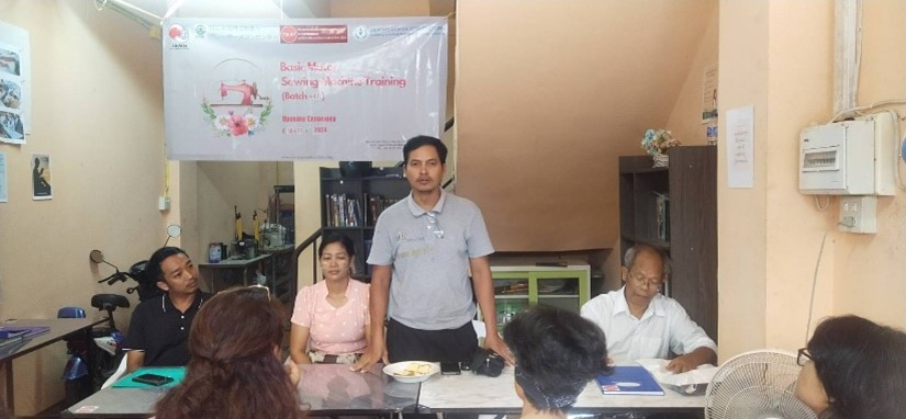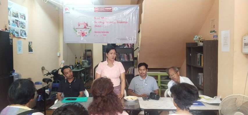 ဦးစွာပထမ New Myanmar Foundation ၏ Executive Director ဒေါက်တာစန်းအောင်မှ အခြေခံမော်တာ စက်ချုပ်သင်တန်းများကို ၂၀၂၂ ခုနှစ် နှစ်ဆန်းပိုင်းမှစ၍ ဖွင့်လှစ်ခဲ့ပြီး အခက်အခဲများစွာရှိခဲ့ကြောင်း၊ ယခုသင်တန်းအား Japan’s Official Development Assistance-ODA မှ ထောက်ပံ့ပေးထားခြင်းဖြစ်ပြီး သင်တန်းဖွင့်လှစ်ရခြင်း၏ အဓိကရည်ရွယ်ချက်မှာ အမျိုးသမီးများ၏ စွမ်းဆောင်ရည်မြင့်မားလာစေရန် နှင့် အထည်ချုပ်စက်ရုံများတွင် စက်ချုပ် အလုပ်အကိုင်အား အလွယ်တကူရရှိရန် ရည်ရွယ်ဖွင့်လှစ်ခြင်းဖြစ်ကြောင်း၊ သင်တန်းကာလ စည်းကမ်းများကို လေးစား လိုက်နာရန်၊ သင်တန်းကာလအတွင်း မိသားစုဝင်များကဲ့သို့ ပေါင်းသင်းဆက်ဆံကြရန်နှင့် သင်တန်းသားအားလုံး သင်တန်းပြီးဆုံးသည်အထိ တက်ရောက်ပေးကြရန်၊ သင်တန်းကာလ ပြီးဆုံးသွားပါက လုပ်ငန်းခွင်သို့ ဝင်ရောက်နိုင်ရန် ကြိုးစား ရှာဖွေပေးသွားမည်ဖြစ်ကြောင်း၊ မိမိတို့အစွမ်းအစဖြင့် ရပ်တည်နိင်ပြီး တခြားခက်ခဲနေသူများကိုလည်း ပြန်လည် ကူညီပေးရန်တို့အား ပြောကြားခဲ့ပါသည်။