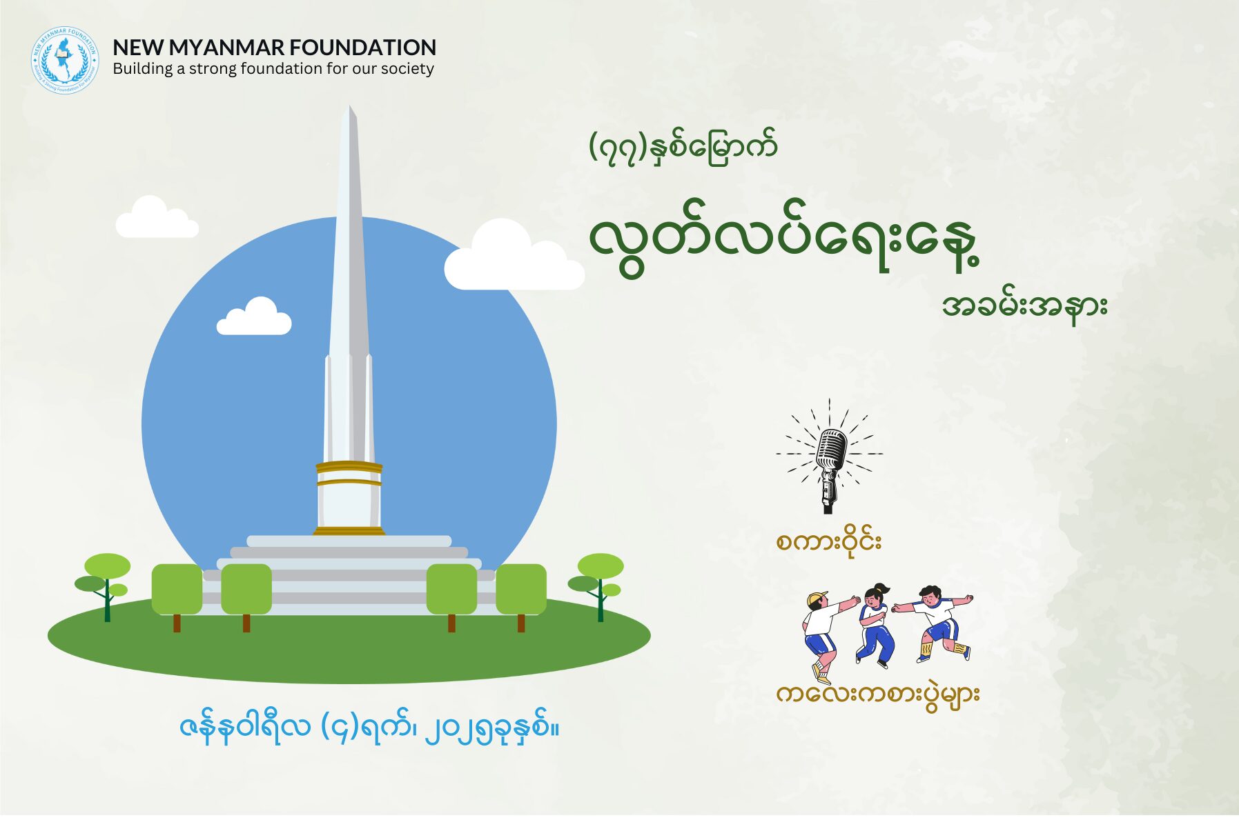 New Myanmar Foundation မှ (၇၇) ကြိမ်မြောက် လွတ်လပ်ရေးနေ့ စကားဝိုင်းနှင့် ကလေး/လူကြီး ကစားပြိုင်ပွဲများ ကျင်းပပြုလုပ်ခဲ့ခြင်