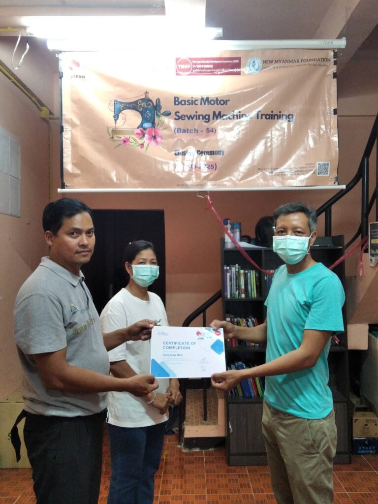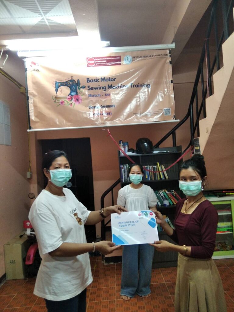 ၂၀၂၅ ခုနှစ်၊ မတ်လ (၄) ရက်နေ့ မှ (၁၅) ရက်အထိ (၁၂) ရက်ကြာ ဖွင့်လှစ်သင်ကြားပေးခဲ့သော နယူးမြန်မာဖောင်ဒေးရှင်း ၏ အခမဲ့အခြေခံလျှပ်စစ်မော်တာ စက်ချုပ်သင်တန်း အပတ်စဉ် (၅၄) သင်တန်းဆင်းပွဲ အခမ်းအနား ကို ၂၀၂၅ ခုနှစ်၊ မတ်လ (၁၄) ရက်နေ့ ညနေ (၄ : ၀၀) နာရီတွင် ထိုင်း-မြန်မာနယ်စပ်ဒေသရှိ နယူးမြန်မာ ဖောင်ဒေးရှင်း၏ စက်ချုုပ်သင်တန်းခန်းမတွင် ကျင်းပပြုလုပ်ခဲ့ပါသည်။ အခြေခံစက်ချုပ်သင်တန်း အပတ်စဉ် (၅၄) ကို တက်ရောက်အောင်မြင်ခဲ့သည့် သင်တန်းသား၊ သင်တန်းသူ စုစုပေါင်း (၉) ဦး (သင်တန်းသား (၄) ဦး နှင့် သင်တန်းသူ (၅) ဦး) ရှိပါသည်။