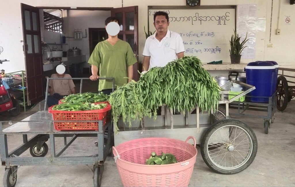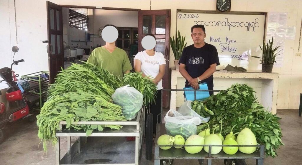 27 . 3 . 2025 ရက်နေ့တွင် စိုက်ပျိုးရေးခြံမှ ထွက်ရှိသော ကြက်ဟင်းခါးသီး – 6 kg ၊ ဘူးသီး – 13 kg ၊ ရုံးပတီသီး – 7.5 kg ကန်စွန်းရွက် – 30 kg ၊ ချဉ်ပေါင်ရွက် – 19 kg နှင့် ဘူးညွန့် – 7 kg ( စုစုပေါင်း – 82 kg ) တို့အား ( မယ်တော်ဆေးခန်း ) သို့ လူဦးရေ – 330 ဦးစာအတွက် သွားရောက်လှူဒါန်းခဲ့ပါသည်။