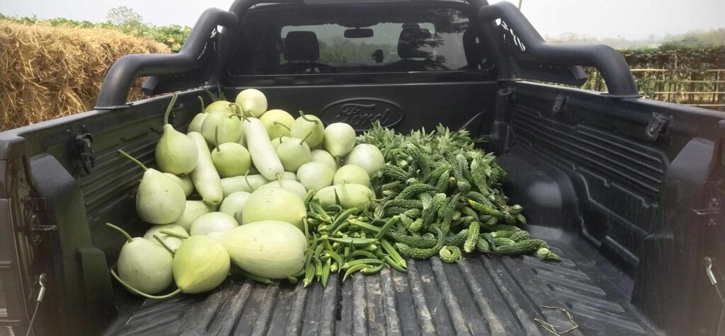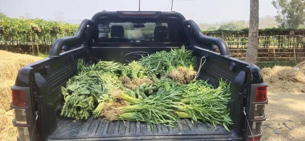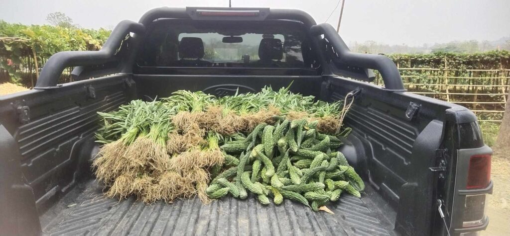 3 . 4 . 2025 ရက်နေ့တွင် စိုက်ပျိုးရေးခြံမှ ထွက်ရှိသော ကြက်ဟင်းခါးသီး – 13 kg ၊ ဘူးသီး – 25.5 kg ၊ ရုံးပတီသီး – 17 kg ကန်စွန်းရွက် – 15 kg ၊ ခရမ်းကျွတ်သီး – 1 kg နှင့် ဘူးညွန့် – 4 kg ( စုစုပေါင်း – 75.5 kg ) တို့အား ( မယ်တော်ဆေးခန်း ) သို့ လူဦးရေ – 302 ဦးစာအတွက် သွားရောက် လှူဒါန်းခဲ့ ပါသည်။
