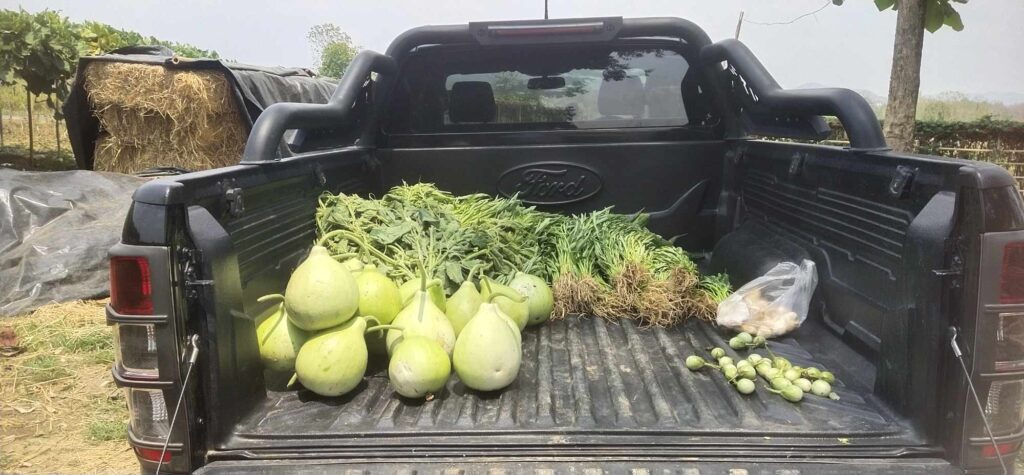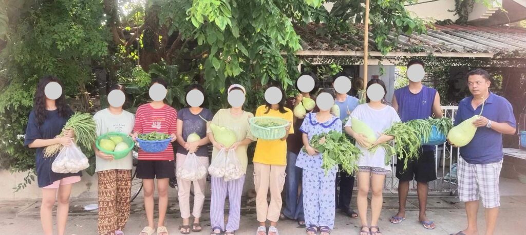 7 . 4 . 2025 ရက်နေ့တွင် စိုက်ပျိုးရေးခြံမှ ထွက်ရှိသော မှို – 9 kg ၊ ကြက်ဟင်းခါးသီး – 18 kg ၊ ရုံးပတီသီး – 18 kg ၊ ဘူးသီး – 23.5 kg နှင့် ဘူးညွန့် – 5 kg ( စုစုပေါင်း – 73.5 kg ) တို့အား ( Manna ကျောင်း ) သို့ လူဦးရေ – 294 ဦးစာအတွက် သွားရောက် လှူဒါန်းခဲ့ ပါသည်။