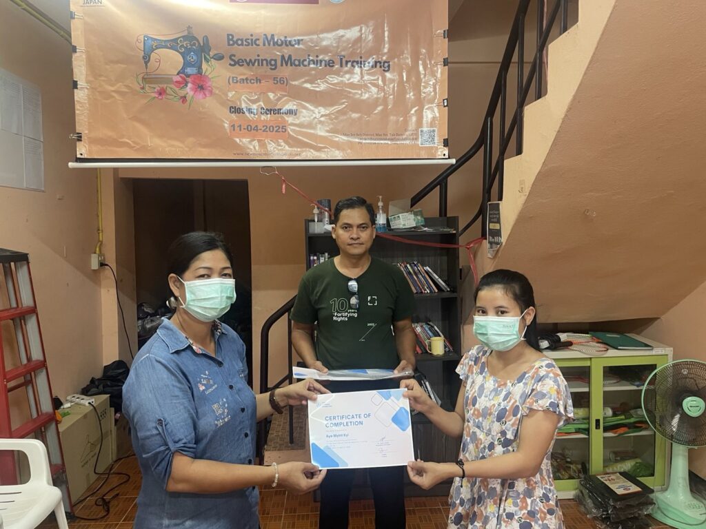 နယူးမြန်မာဖောင်ဒေးရှင်း၏ အခမဲ့အခြေခံမော်တာစက်ချုပ်သင်တန်း အပတ်စဉ် (၅၆) သင်တန်းဆင်းပွဲ