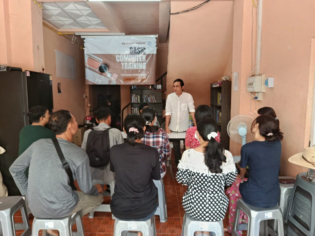 ဦးစွာပထမ 𝐍𝐞𝐰 𝐌𝐲𝐚𝐧𝐦𝐚𝐫 𝐅𝐨𝐮𝐧𝐝𝐚𝐭𝐢𝐨𝐧 ၏ 𝐄𝐱𝐞𝐜𝐮𝐭𝐢𝐯𝐞 𝐃𝐢𝐫𝐞𝐜𝐭𝐨𝐫 ဒေါက်တာစန်းအောင်မှ အခမဲ့ အခြေခံကွန်ပျူတာသင်တန်းသည် အပတ်စဉ် (၁) ဖြစ်ပြီး အခုမှစတင်ဖွင့်လှစ်သည့်အတွက် တချို့အခက်ခဲများရှိနိုင်ကြောင်း၊ သင်တန်းဖွင့်လှစ်ရခြင်း၏ အဓိက ရည်ရွယ်ချက်မှာ မြန်မာပြည်သူ ပြည်သားများ အလုပ်အကိုင် ရှာဖွေခြင်း နှင့် ပညာသင်ကြားခြင်းတို့တွင် အထောက်အကူပြုရန် ရည်ရွယ် ဖွင့်လှစ်ခြင်းဖြစ်ကြောင်း၊ သင်တန်းကာလ (၇) ရက်အတွင်း စည်းကမ်းများကို လေးစားလိုက်နာရန်၊ သင်တန်းကာလအတွင်း မိသားစုဝင်များကဲ့သို့ ပေါင်းသင်းဆက်ဆံကြရန်နှင့် သင်တန်းအားလုံး ပြီးဆုံးသည်အထိ တက်ရောက်‌ပေးကြရန်၊ မိမိတို့အစွမ်းအစဖြင့် ရပ်တည်နိင်ပြီး တခြားခက်ခဲနေသူများကိုလည်း ပြန်လည်ကူညီပေးရန်တို့အား ပြောကြားခဲ့ပါသည်။