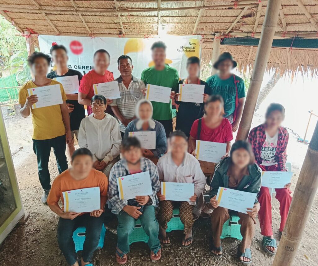 𝐍𝐞𝐰 𝐌𝐲𝐚𝐧𝐦𝐚𝐫 𝐅𝐨𝐮𝐧𝐝𝐚𝐭𝐢𝐨𝐧 မှ ဦးစီးကျင်းပပြုလုပ်သော (၃၀) ရက်ကြာ အခမဲ့စိုက်ပျိုးရေးသင်တန်း ” အပတ်စဉ်-(၉) ပိတ်ပွဲအခမ်းအနားကို ၂၀၂၅ ခုနှစ်၊ ဇူလိုင်လ (၈) ရက်နေ့၊ ညနေ (၃) နာရီတွင် မဲဆောက်မြို့ ဟုံဖိုင်ကျေးရွာတွင် ကျင်းပပြုလုပ်ခဲ့ပါသည်။