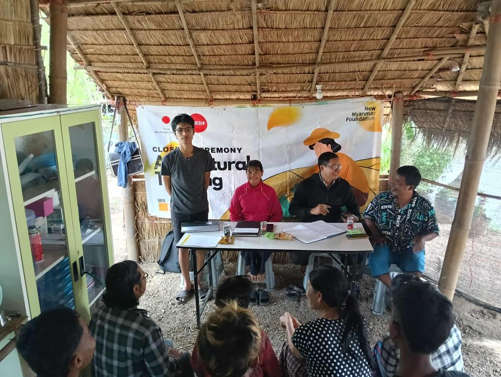 𝐍𝐞𝐰 𝐌𝐲𝐚𝐧𝐦𝐚𝐫 𝐅𝐨𝐮𝐧𝐝𝐚𝐭𝐢𝐨𝐧 မှ ဦးစီးကျင်းပပြုလုပ်သော (၃၀) ရက်ကြာ အခမဲ့စိုက်ပျိုးရေးသင်တန်း ” အပတ်စဉ်-(၁၀) ပိတ်ပွဲအခမ်းအနားကို ၂၀၂၅ ခုနှစ်၊ ဩဂုတ်လ (၅) ရက်နေ့၊ ညနေ (၃) နာရီတွင် မဲဆောက်မြို့ ဟုံဖိုင်ကျေးရွာတွင် ကျင်းပပြုလုပ်ခဲ့ပါသည်။