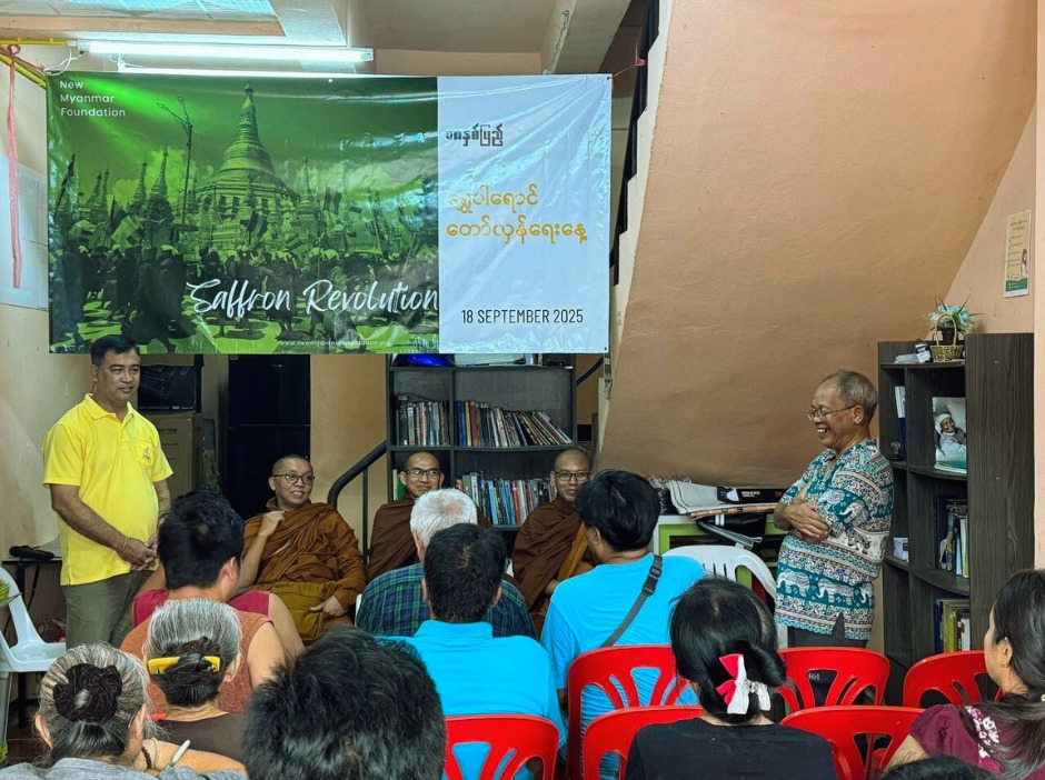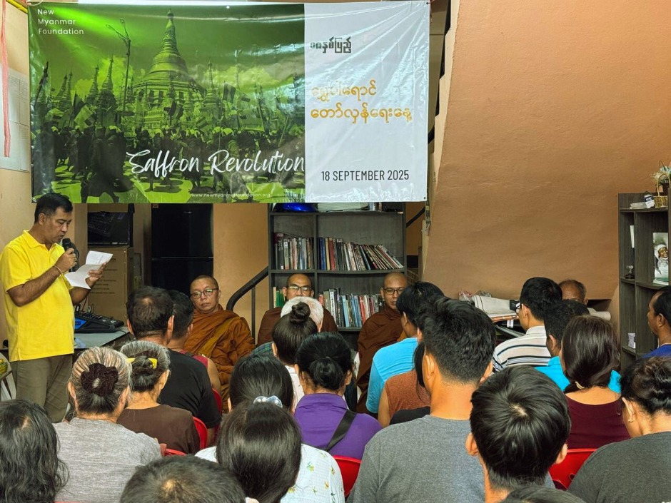 ထို့နောက် နယူးမြန်မာဖောင်ဒေးရှင်း၏ 𝐄𝐱𝐞𝐜𝐮𝐭𝐢𝐯𝐞 𝐃𝐢𝐫𝐞𝐜𝐭𝐨𝐫 𝐃𝐫. 𝐒𝐚𝐧𝐧 𝐀𝐮𝐧𝐠 မှ အဖွင့်အမှာ စကားပြောကြားပြီး အထူးဖိတ်ကြား ထားသော ဆရာတော် မင်းသုည (ဗုဒ္ဓတက္ကသိုလ်) နှင့် ဆရာတော် ဦးကောသိဒသာရ (မှော်ဘီ) မှ ရွှေဝါရောင်တော်လှန်ရေးနှင့်ပတ်သတ်သည့် ကိုယ်တွေ့ အဖြစ်အပျက်များ မျှဝေ ပြောကြားခြင်း၊ ဦးတေဇာနန္ဒ (တန်ဆည်) မှ ရွှေဝါရောင် တော်လှန်ရေးကဗျာ ရွတ်ဖတ်ခြင်းနှင့် တက်ရောက်လာသော ဧည့်သည်တော်များမှ ရွှေဝါရောင်တော်လှန်ရေးနှင့် ပတ်သတ်သည့် အကြောင်းအရာများအား ပါဝင်ဆွေးနွေးခြင်းများ ပြုလုပ်ခဲ့ကြပြီး အခမ်အနားအား အောင်မြင်စွာ ပိတ်သိမ်းခဲ့ပါသည်။