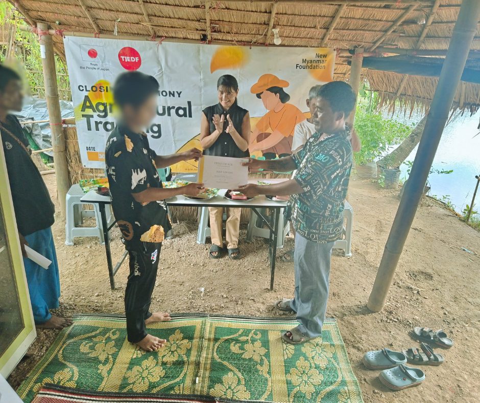 𝐍𝐞𝐰 𝐌𝐲𝐚𝐧𝐦𝐚𝐫 𝐅𝐨𝐮𝐧𝐝𝐚𝐭𝐢𝐨𝐧 မှ ဦးစီးကျင်းပပြုလုပ်သော (၃၀) ရက်ကြာ အခမဲ့စိုက်ပျိုးရေးသင်တန်း ” အပတ်စဉ်-(၁၂) ပိတ်ပွဲအခမ်းအနားကို ၂၀၂၅ ခုနှစ်၊ စက်တင်ဘာလ (30) ရက်နေ့၊ ညနေ (၃) နာရီတွင် မဲဆောက်မြို့ ဟုံဖိုင်ကျေးရွာတွင် ကျင်းပပြုလုပ်ခဲ့ပါသည်။