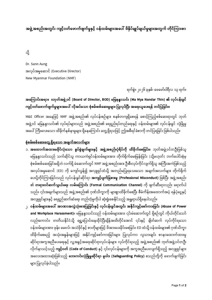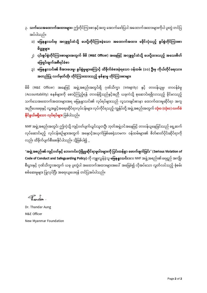 𝗡𝗲𝘄 𝗠𝘆𝗮𝗻𝗺𝗮𝗿 𝗙𝗼𝘂𝗻𝗱𝗮𝘁𝗶𝗼𝗻 ၏ အရေးပေါ်အခြေခံစားနပ်ရိက္ခာ ထောက်ပံ့သည့် အစီအစဉ်ကို ၂၀၂၄ အောက်တိုဘာလတွင် စတင်ခဲ့ပြီး ၂၀၂၆ ဖေဖော်ဝါရီလအထိ အရေးပေါ်အခြေခံ စားနပ်ရိက္ခာ ထောက်ပံ့ခဲ့ပြီး ဖြစ်ပါသည်။ • ပုံမှန်အားဖြင့် လူတစ်ဦးလျှင် တစ်ကြိမ်သာ ရိက္ခာလျှောက်ထားနိုင်ပြီး (၁) လစာ ပမာဏ...