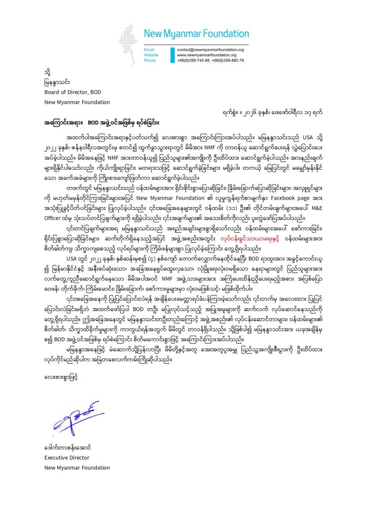 မဲဆောက်ရောက်ဒီမိုကရေစီအင်အားစုများရှင့် ကိုယ်စိတ်နှစ်ဖြာ ကျန်းမာ ချမ်းသာ ကြပါစေ ။ 𝐍𝐞𝐰 𝐌𝐲𝐚𝐧𝐦𝐚𝐫 𝐅𝐨𝐮𝐧𝐝𝐚𝐭𝐢𝐨𝐧 တွင် ပုံမှန် လစဉ် ရိက္ခာလျှောက်ထားနိုင်သူများမှာ - မဲဆောက်ရောက် ဒီမိုကရေစီ အင်အားစုများထဲမှ မိသားစုဝင်ငွေမရှိသူများ ၊ ကိုယ်ဝန်ဆောင်မိခင်များ ၊ မသန်စွမ်းသူများ ၊...